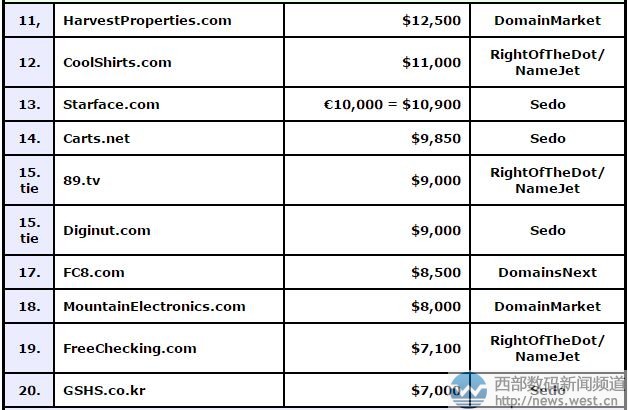 超越两数字01.com!域名fly.com以1991万元领跑DN榜西部数码(west.cn)5月4日消息,本期的DN交易榜(4.24-4.30)上,虽然短字符域名和单词域名各有千秋,但榜单的冠军宝座却被极为短小精湛的单词域名fly.com以2,890,000美元的高价摘得,约合人民币1991万元。这也是目前为止,今年DN榜上成交价最高的域名,甚至超过以1,820,000美元成交的01.COM。